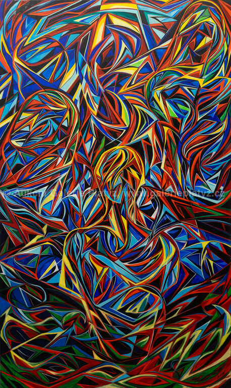 Při prvním setkání s Janovými obrazy jsem se původně domníval, že ony pro ně typické ostré linie jsou od počátku jasné a předkreslené. Překvapivým zážitkem pro mě bylo procházet s Janem procesem tvorby. Postupné rození linií z amorfních barevných mlhovin na podmalbách připomíná proces utváření krystalu. Poznání této cesty formování skutečnosti od chaosu k řádu nabízí zajímavé souvislosti pro interpretaci obrazů.